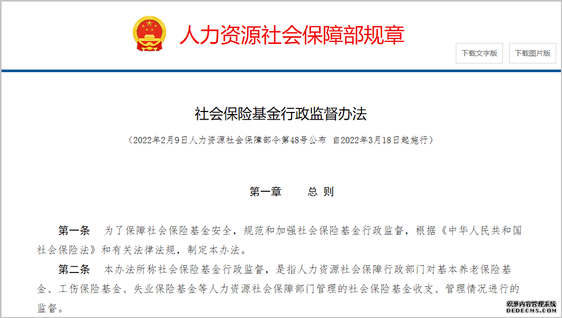 第四十二条 本办法自2022年3月18日起施行。原劳动和社会保障部《社会保险基金行政监督办法》(劳动和社会保障部令第12号)同时废止。